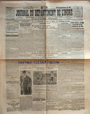 This book JOURNAL DU DEPARTEMENT DE L'INDRE du 20/03/1924 - LA FAILLITE DES PARLEMENTS - M. CAILLAUX - M. POINCARE - M. MILLERAND PAR GAUBERT - ZAGLOUL PACHA ET MACDONALD ECHANGENT DES TELEGRAMME - LE CALIFE EN EXIL - LES FINANCIERS DU REICH - ANGLETERRE - AUX COMMUNES - OBSEQUES DE MME RAOUL - LE MOUVEMENT REPUBLICAIN EN PERSE - LA COUPE DE FRANCE DE FOOT - LES RECETTES DE CHEMINS DE FER ALLEMANDS - ALLEMAGNE - FAUX ACCORDS SECRETS FRANCO-TCHECOSLOVAQUES - LA POLITIQUE DE L'INDRE - you must read.